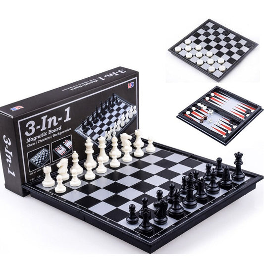 3 IN 1 10" MAGNETIC CHESS / CHECKERS / BACKGAMMON