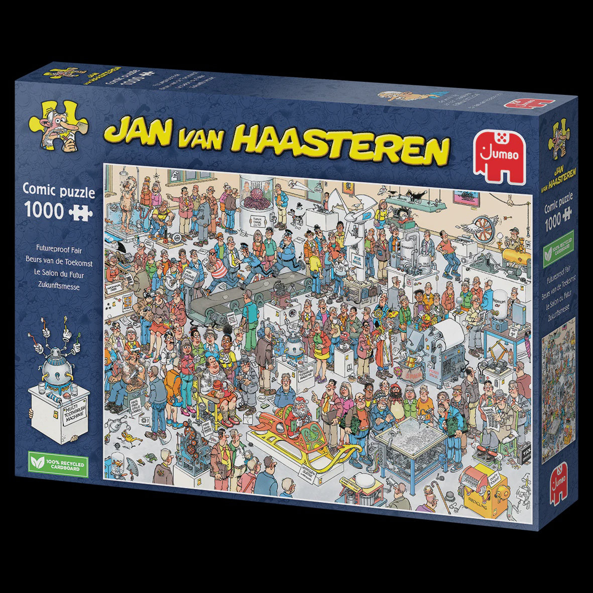 Jan began his career at the advertising agency Grijseels, after which he obtained a job at Nijgh & Van Ditmar. Jan worked as an assistant to Loek van Delden on the strip "Smidje Verholen," making his debut as a cartoonist. His career as a cartoonist really took off when Jan started working at the Marten Toonder Studios. Jan contributed to strips such as "Kappie," "Tom Poes," "Donald Duck," "de Boze Wolf," and "Hiawatha. Jan’s first jigsaw puzzles were a series of Popeye puzzles released in 1975. Jan also illustrated a puzzle image for IKEA. Several of Jan’s puzzles have been published by Ravensburger an PTZ. In 2003, he signed a lifetime contract with Jumbo. Initially, Jumbo selected an existing advertising illustration drawn by Jan, and turned it into a puzzle. As demand for puzzles grew, he started making original illustrations specifically for puzzles. The Jan van Haasteren brand, complete with its distinctive logo and now famous characters, became established. Despite Jan's advancing age, his passion for drawing remains as strong as ever. His work continues to bring joy and entertainment to people of all ages, and his puzzles remain a beloved activity for families all around the world.