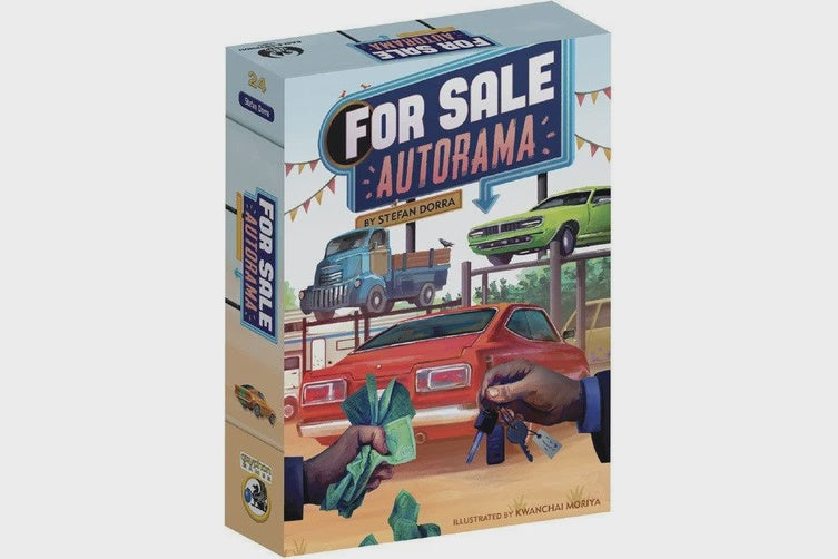 3–6 Players|Age: 10+|For Sale Autorama is a quick, fun game about buying and selling vehicles: cars, motorcycles, RVs, semi-trucks, etc. During the game's three distinct phases, players first bid to hire advisors, with those advisors then assisting them in the other two phases of the game, when the players purchase several vehicles, then attempt to sell them for the greatest profit possible.