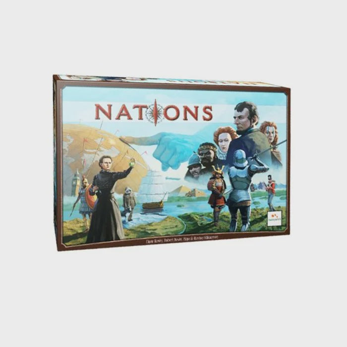 Nations is an intense historical board game for 1–5 players that takes 40 minutes per player to play. Players control the fate of nations from their humble start in prehistoric times until the beginning of World War I. The nations constantly compete against each other and must balance immediate needs, long-term growth, threats, and opportunities.