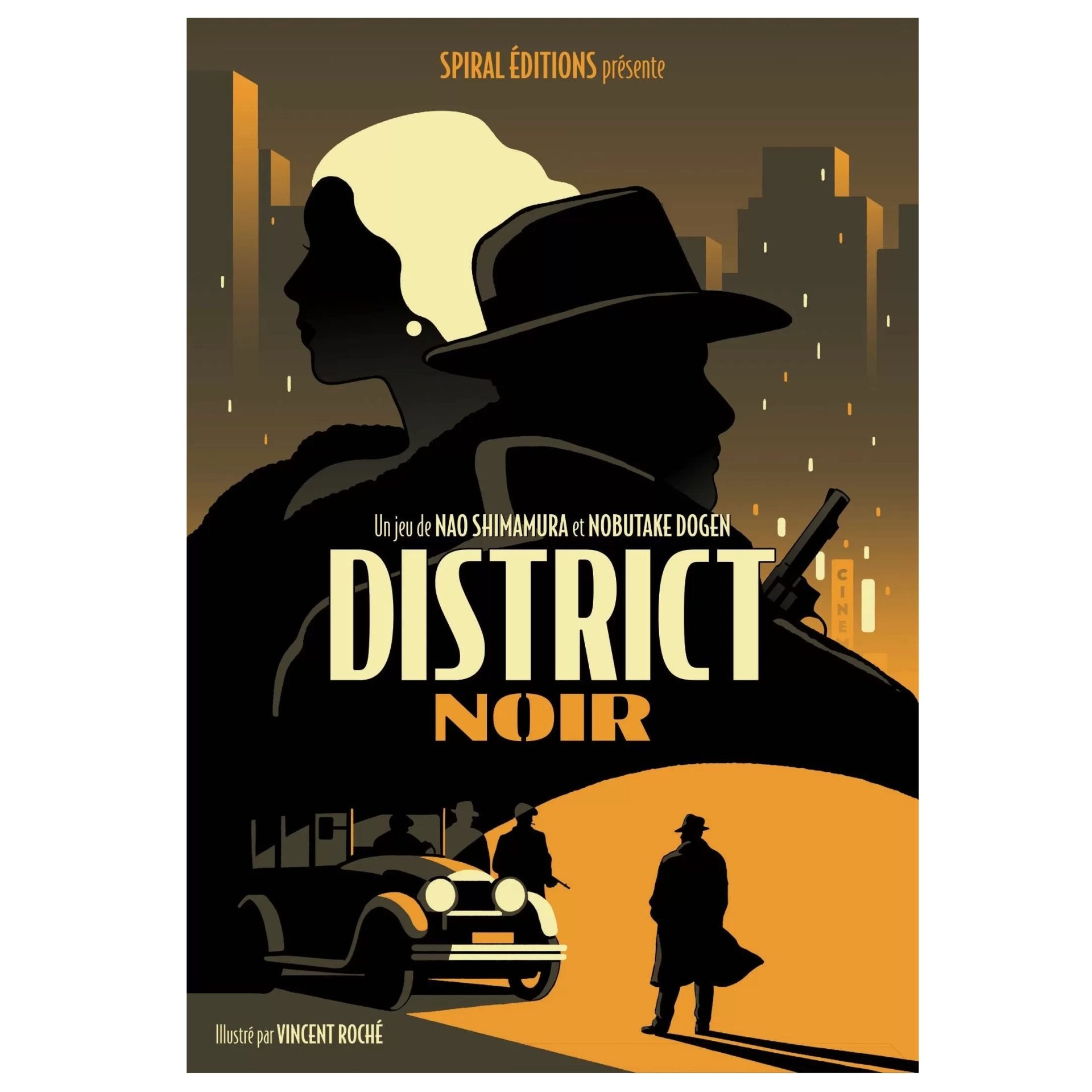District Noir is a two-player game with bluffing and set collection. To set-up the game, remove three face-down cards from the deck of 45 cards from the game, then lay out two cards face up to start a line. Each round, each player receives five cards in hand, and each turn you either play one card from your hand to the end of the line or — once per round — collect the most recently played five cards. Once all the cards from hand have been played, deal out five cards to each player and start the next round. After four rounds, the game ends.