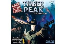 Last Night on Earth: Timber Peak is an action-packed standalone game as well as an expansion for Last Night on Earth. Introducing the brand new town of Timber Peak with a full set of game boards, six new Heroes (including three Survivor versions of Heroes from the original Last Night on Earth), four Generator objective pieces, a full set of 14 Zombies, a host of new Scenarios, rules for fire breaking out and spreading, over 130 new game cards, and a full Experience System for both Heroes and the Zombie horde to gain upgrades within the course of each game!