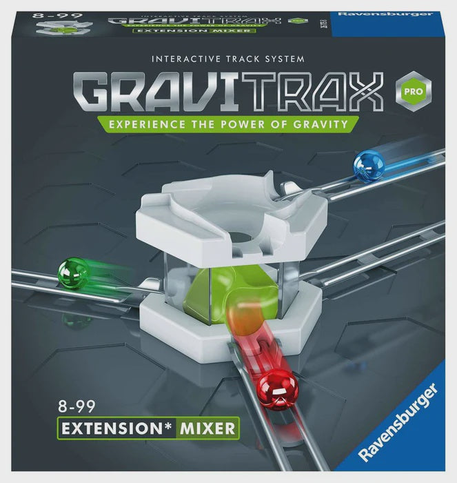 Combine the mixer with your GraviTrax starter set and add even more action to your routes! How do you mix the paths of your ball. Mix up the marbles’ journey with the Mixer. Add some surprise to your tracks by sending up to three marbles into the Mixer and see which sides they exit from. Combine this Add on with the GraviTrax Pro Starter Set.