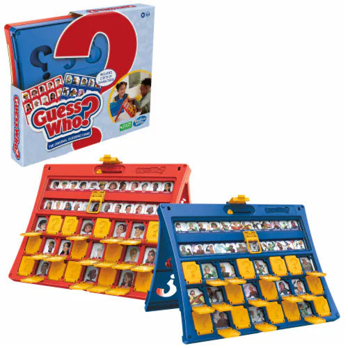 2 Players| Age: 6+| The mystery face game where you flip over a collection of faces with different color hair, eye color, hair, hats, glasses etc. to deduce who the secret person is that your opponent has chosen. You flip over the hooked tiles as you narrow your choices by asking characteristic questions.