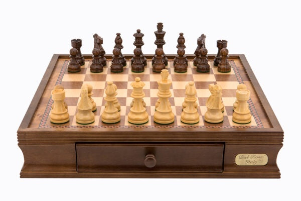 The Dal Rossi Chess Set, measuring an impressive 16 inches, stands as a testament to the fusion of craftsmanship and elegance. Crafted with precision and care, this exquisite chess set features Boxwood and Sheesham wood, two of the finest materials renowned for their durability and aesthetic appeal.