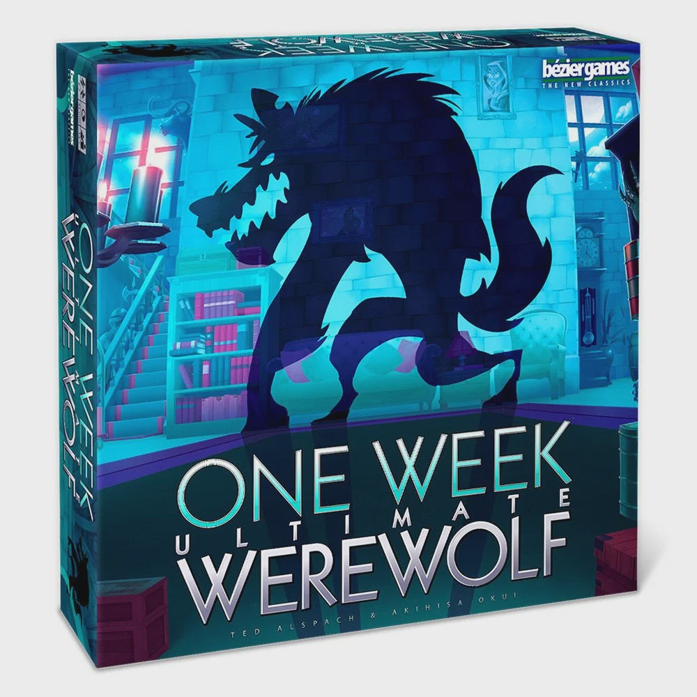 3–7 Players| Age: 8+| One Week Ultimate Werewolf takes the gameplay of One Night Ultimate Werewolf and twists it up in a knot, with ever-increasing tension as you venture into the special rooms of Ludwig Castle. Each room provides a special power, and those powers are the key to figuring out the mystery of who among you is a werewolf. Roles can be viewed and switched several times before all is said and done, then the final vote takes place.