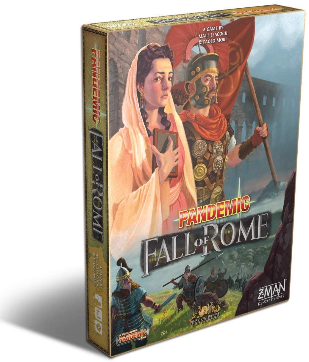 Combining the cooperative gameplay of Pandemic with innovative new mechanisms, Pandemic: Fall of Rome takes players back in history to the time of the world's greatest empire: Rome. A weakened military has left the borders open to invasion from countless tribes such as the Anglo-Saxons, Goths, Vandals, and Huns. As you march through the Roman Empire, you must recruit armies, fortify cities, forge alliances, and face off against the invading hordes in battle.